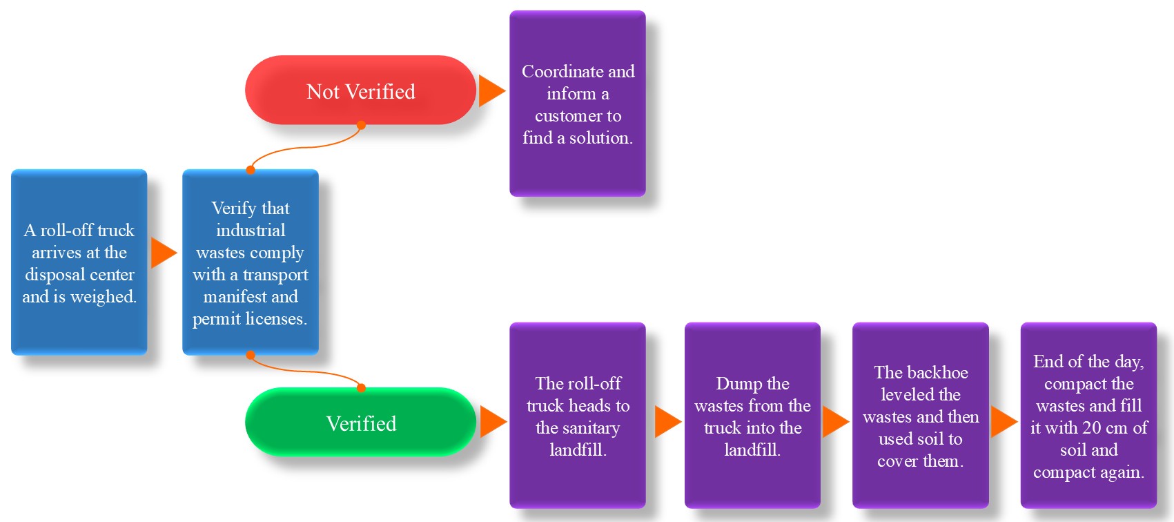 Industrial wastes will be transported from customer factories to the Industrial Waste Disposal Centers. During transportation, the company has implemented an efficient transportation system that allows for complete control and inspection at every step. The transport vehicles are specifically designed for transporting various types of industrial wastes.